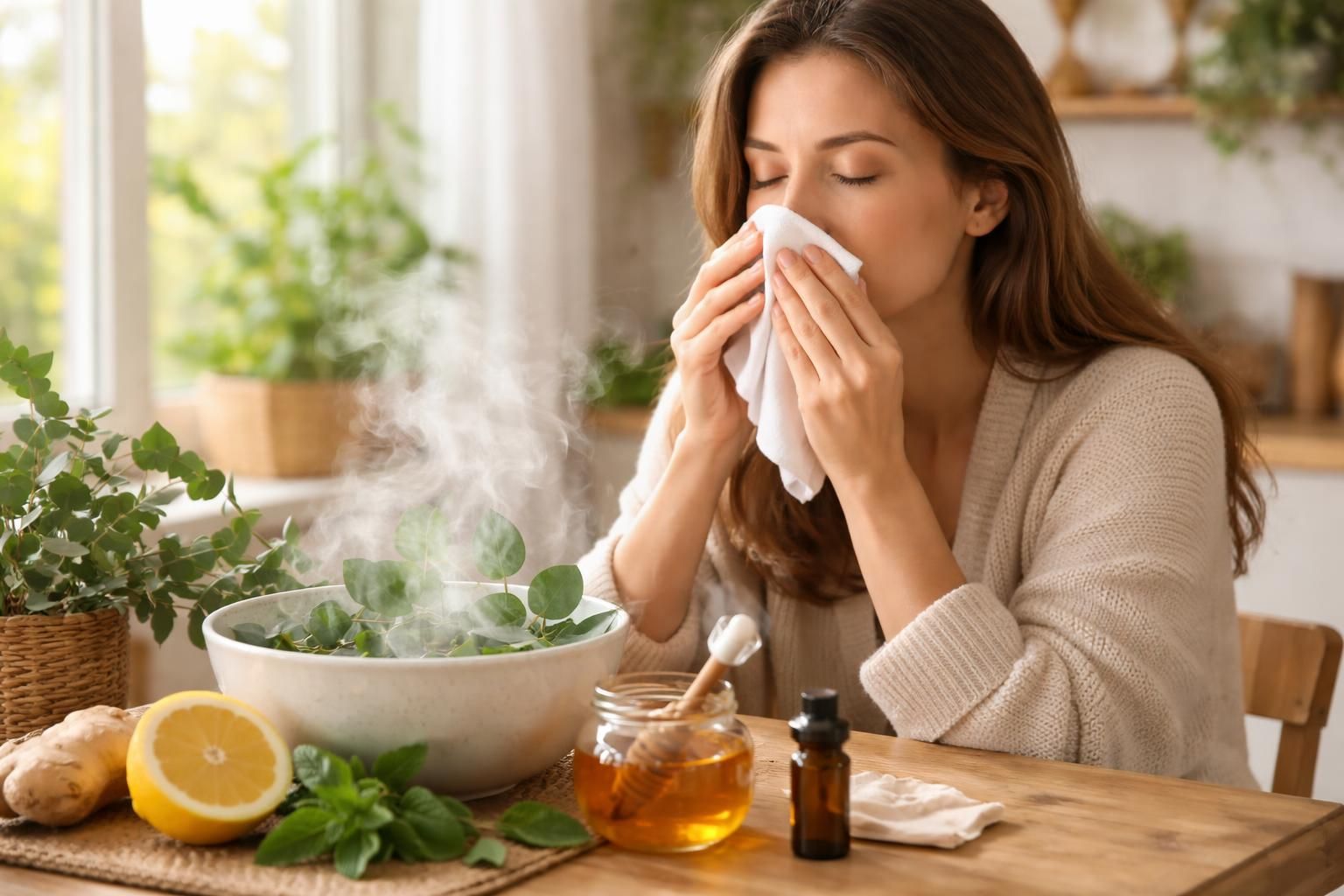 - Inhalation de vapeur : L’utilisation de vapeur chaude permet de décongestionner les voies nasales. Ajouter quelques gouttes d’huile essentielle d’eucalyptus ou de menthe poivrée peut rehausser l’effet.